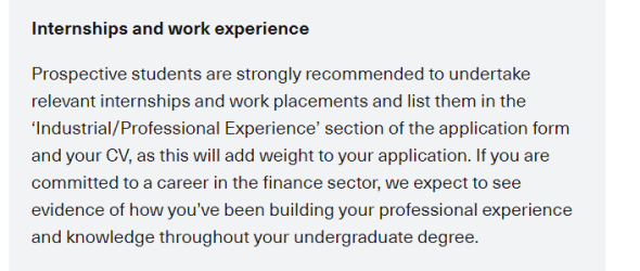 KCL官網(wǎng)也是明確表示建議同學(xué)們準(zhǔn)備相關(guān)實習(xí)或者工作經(jīng)驗。