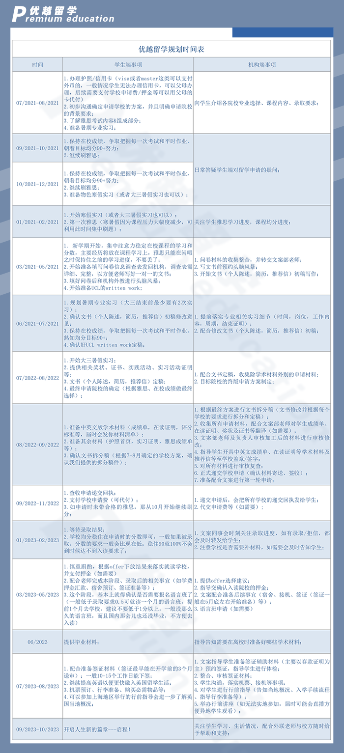 ♦ 留學申請并不是一蹴而就的事情,需要長時間做準備。優(yōu)越君再叮囑一次大家務必早規(guī)劃早準備,而且要預留足夠時間和空間來應對疫情突發(fā)情況。關于24fall留學申請的任何時間規(guī)劃問題,歡迎聯(lián)系我們顧問為你詳細定制一個科學的規(guī)劃表。