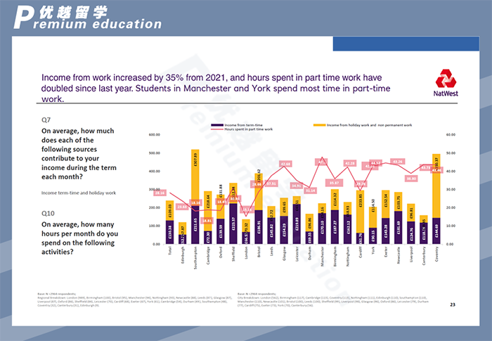 其中謝菲爾德的大學(xué)生學(xué)期內(nèi)兼職收入最高,平均223英鎊/月;考文垂學(xué)生的假期兼職收入則高達(dá)350英鎊/月。