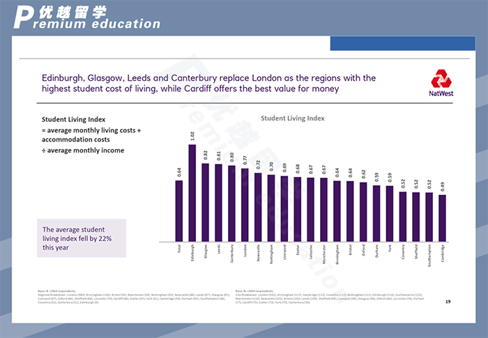 近日,英國的Natwest發(fā)布了《2022年英國大學(xué)生生活指數(shù)》報告出爐。報告調(diào)查了英國21個城市近300名大學(xué)生為樣本,通過調(diào)查不同城市大學(xué)的學(xué)生支出和學(xué)生收入情況,總結(jié)了英國性價比最高的10座英國城市,跟隨英國留學(xué)機(jī)構(gòu)優(yōu)越一起來看看吧!