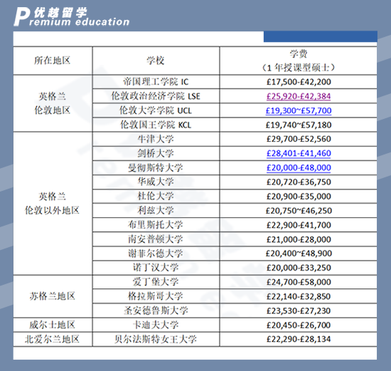 英國留學的學費占大頭,不同學校和專業(yè)的學費差異較大,總的來說一定的規(guī)律。一般而言,綜合排名較高的學校費用也會較高;倫敦地區(qū)學校的學費總體來說會偏高;醫(yī)學類學費最貴,商科、理工科專業(yè)學費普遍偏貴一些,文科類、社科類學費較低。