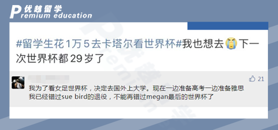 于球迷而言,世界杯也是自己人生的一次見證。甚至有年輕球迷為了看明年的女足世界杯,準備去國外上大學。而下一次世界杯很多人快30歲了,趁現(xiàn)在留學天時地利,不給青春留遺憾。