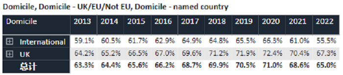 2022年度UCAS共收到了3048480份申請,共發(fā)放了1980590份offer,官方公布的offer率約為65%,比前一年下降了3.6%。
