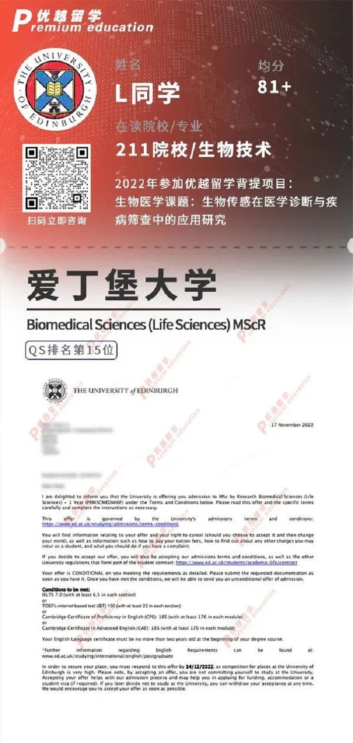 愛丁堡大學(xué) 生物醫(yī)學(xué)專業(yè):