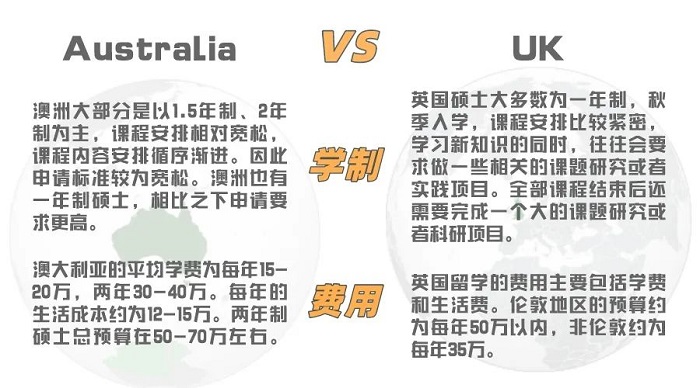 二、澳洲 vs 英國,學(xué)費(fèi)+學(xué)制有何差別
