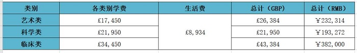 文學(xué)、哲學(xué)碩士學(xué)費(fèi)相對(duì)其他類別學(xué)科較低,一般在24,513英鎊與26,208英鎊之間。