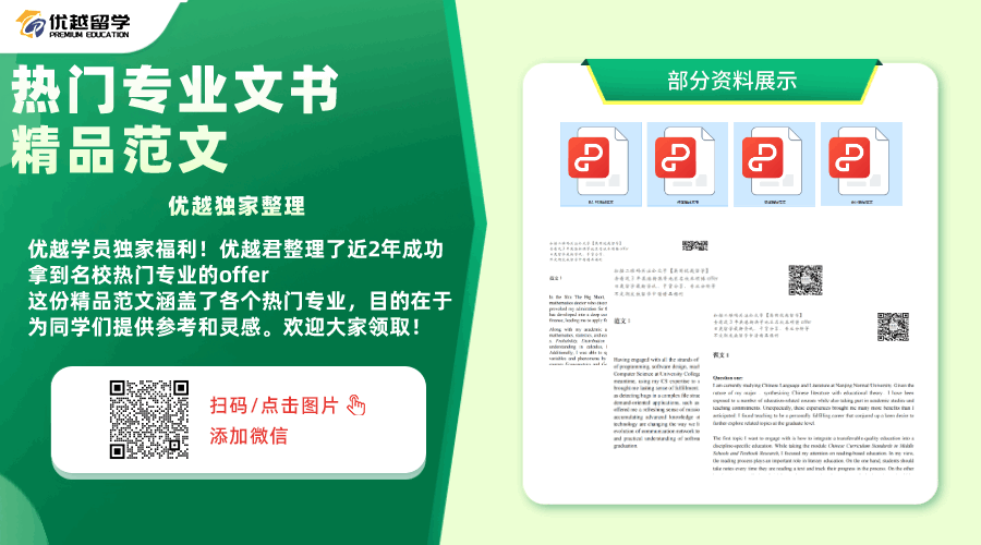以上是【本期留學(xué)資料大放送】相關(guān)的全部內(nèi)容,查看更多出國留學(xué)相關(guān)資訊可前往【優(yōu)越留學(xué)】首頁!詳細(xì)申請規(guī)劃及方案定制請點擊頁面【【在線咨詢】】預(yù)約優(yōu)越留學(xué)顧問為你一對一解答!
