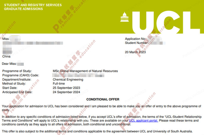 經(jīng)常在知乎上看大家提問說,沒有語言成績(jī)可以申請(qǐng)英國(guó)的大學(xué)嗎?其實(shí)語言成績(jī)對(duì)英國(guó)留學(xué)申請(qǐng)是很重要的,最好是建議大家能夠在提交材料之前能夠準(zhǔn)備好語言成績(jī),但是其實(shí)沒有語言成績(jī)其實(shí)也是可以申請(qǐng)英國(guó)大學(xué)研究生的。今天給大家介紹下最近優(yōu)越君收到的一個(gè)案例,總結(jié)來說就是無語言成績(jī)也能拿下UCL自然資源全球管理專業(yè)offer。