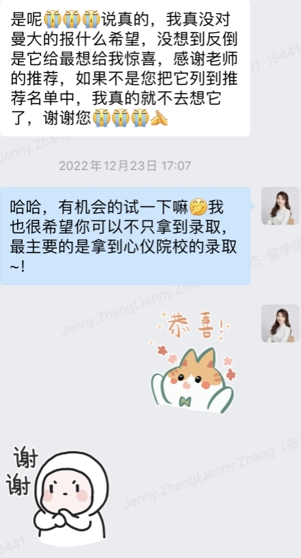 該同學本身是雙非院校,不在英國大多前百院校的list里,但老師還是憑借豐富的申請經驗,幫助學生挑選到了夢校曼大的冷門專業(yè)進行沖刺。