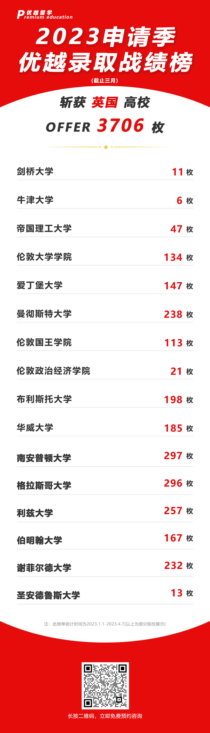 23fall申請季,優(yōu)越留學(xué)英國名校錄取成績單,不僅數(shù)量多,質(zhì)量還高!