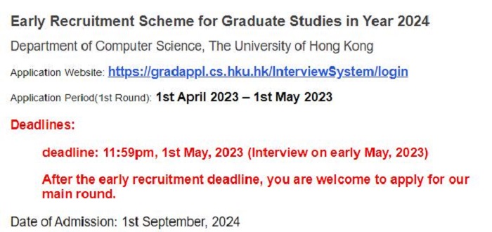 香港大學(xué)的CS項目一向炙手可熱,計算機研究型碩士也是最早一批開放提前批申請的項目。