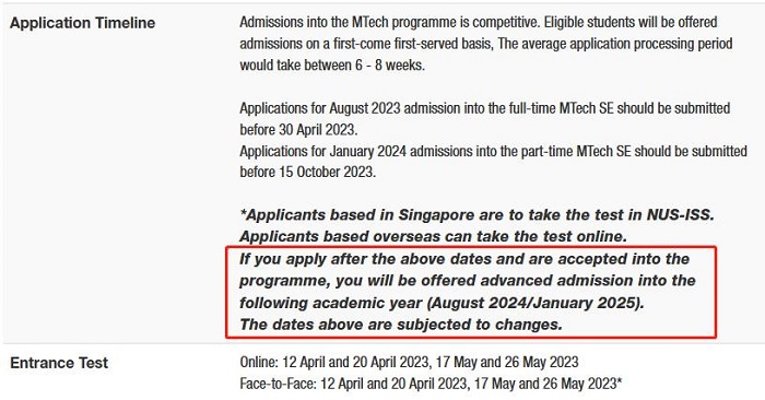 新加坡國立大學(xué)今年比較慷慨,提前放出了3個24Fall提前批專業(yè)。NUS官網(wǎng)表示:23fall申請截止日期為2023年4月30日,在2023年4月30日之后申請該專業(yè)(全日制),作為下學(xué)年24fall的提前批優(yōu)先申請。