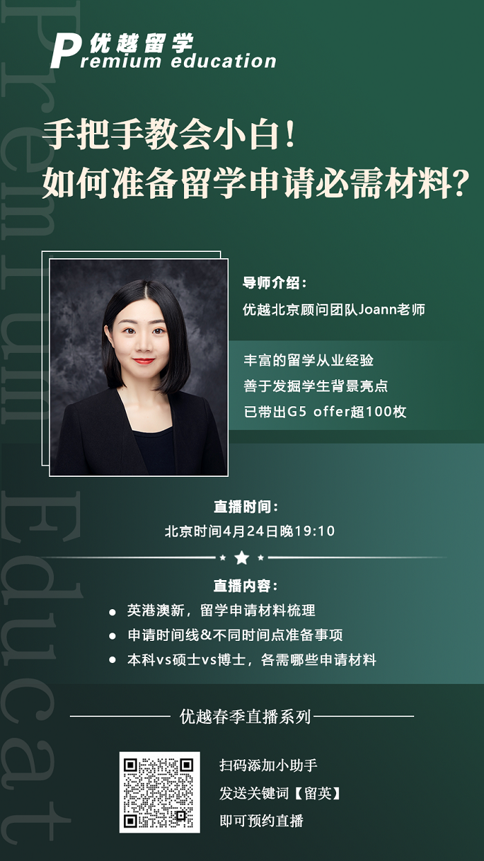 很多學(xué)校比如新國立,提前批的申請材料比常規(guī)申請的材料更少。準備申請材料是個復(fù)雜瑣碎但至關(guān)重要的步驟,為了厘清這項大工程,優(yōu)越君特意邀請了專業(yè)資深顧問為大家詳解。