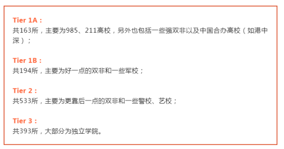 利茲大學(xué)將中國院校劃分了4檔:
