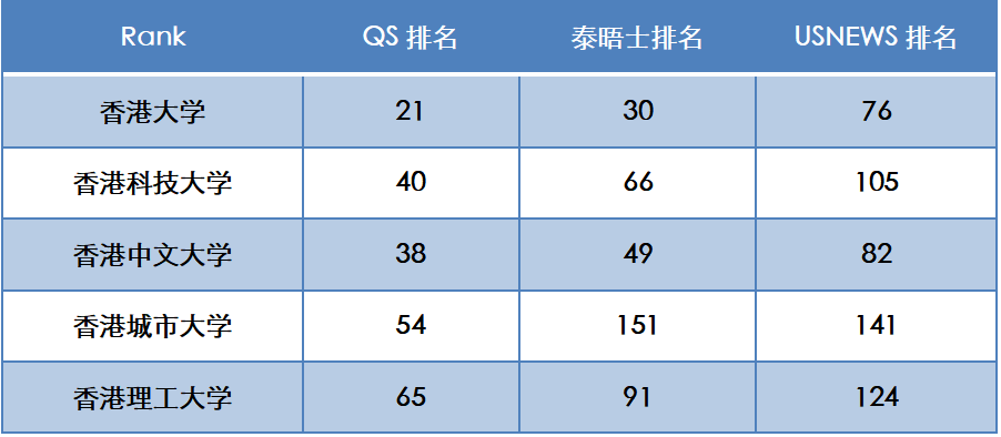 2023年中國(guó)香港前五大學(xué)世界排名: