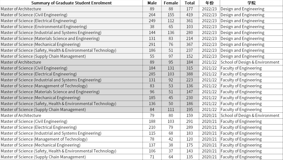小編整理了新加坡國(guó)立大學(xué)各學(xué)院近3年來(lái)的授課型研究生相關(guān)數(shù)據(jù),為即將在2024年秋季申請(qǐng)新加坡國(guó)立大學(xué)的小伙伴們提供一些參考方向。