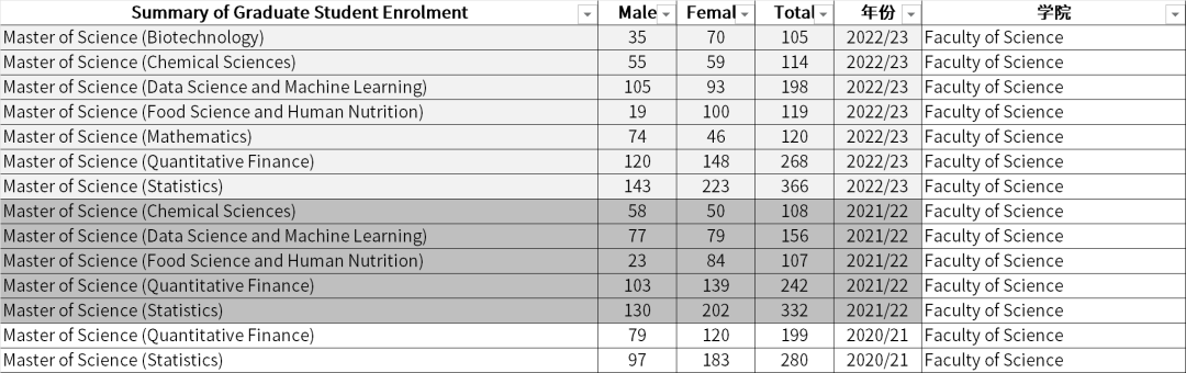 Master of Science(Statistics)和Master of Science(Quantitative Finance)是熱門專業(yè),近三年的招生人數(shù)逐年上漲。