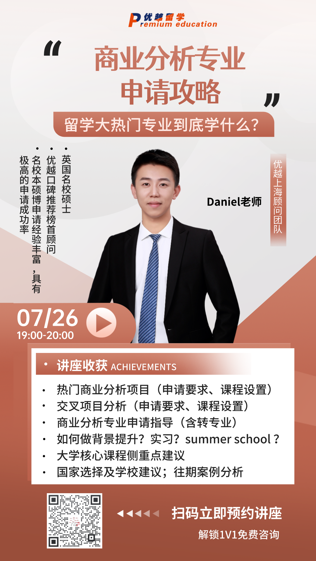 7月26日晚7點(diǎn)蹲守優(yōu)越直播間,聽(tīng)聽(tīng)優(yōu)越上海顧問(wèn)團(tuán)隊(duì)的【商業(yè)分析專業(yè)】留學(xué)專題線上講座~