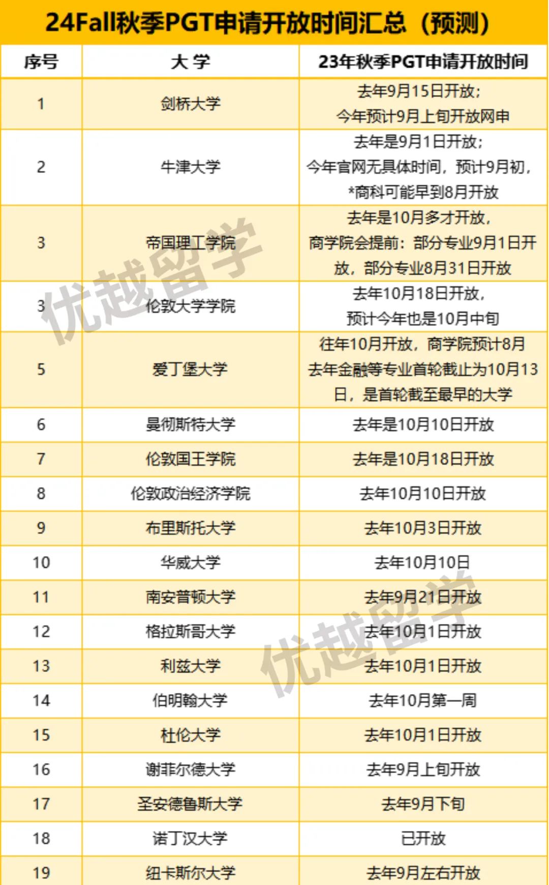 篇幅原因,其他的院校開放網申時間&預測,優(yōu)越君特別做了一張表格,建議大家馬一下??