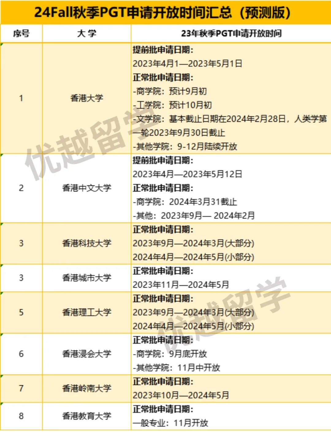 篇幅原因,港新院校的網申時間&預測,優(yōu)越君也特別做了一張表格,建議大家馬一下??