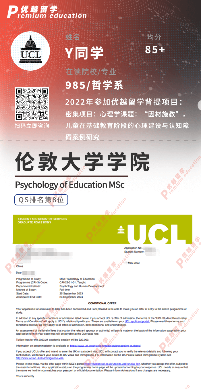 以上是【英國心理學碩士怎么申請?八大top大學申請要求+案例分享!】相關的全部內容,查看更多【英國心理學碩士】相關資訊可前往【優(yōu)越留學】首頁!詳細申請規(guī)劃及方案定制請預約優(yōu)越留學顧問為你一對一解答!