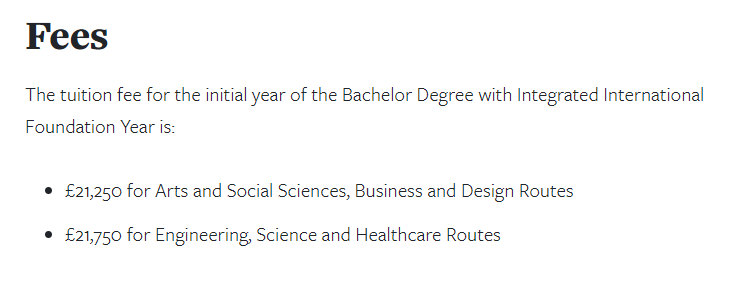 謝菲爾德大學(xué):大學(xué)預(yù)科的費(fèi)用根據(jù)課程的不同而有所差異,具體費(fèi)用需要咨詢學(xué)校。