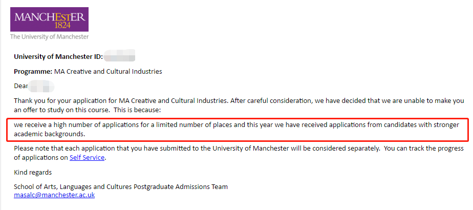 雖然曼大沒有公布數(shù)字市場(chǎng)營(yíng)銷專業(yè)的錄取數(shù)據(jù),但可以預(yù)想到一片慘淡。優(yōu)越君查看今年的申請(qǐng)案例時(shí)發(fā)現(xiàn),本科211、均分90+申請(qǐng)MSc Digital Marketing照樣被拒!