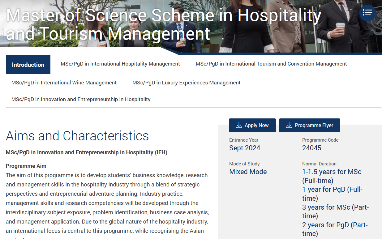 港理工24Fall目前新增2個(gè)碩士項(xiàng)目,分別是豪華體驗(yàn)管理碩士和酒店業(yè)創(chuàng)新與創(chuàng)業(yè)碩士,港理工的酒店與旅游專業(yè)排名在世界范圍數(shù)一數(shù)二,是專業(yè)領(lǐng)域內(nèi)的王牌項(xiàng)目。