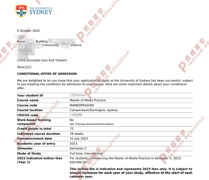 錄取結果:The University of Sydney