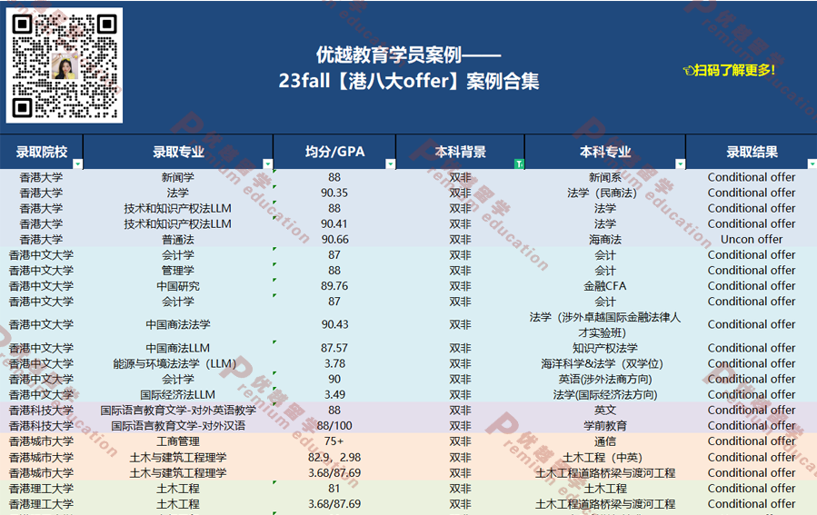 例如,以下是23fall雙非背景成功申請(qǐng)到港八大的部分案例。想查看完整的《港八大案例合集》,請(qǐng)掃碼下圖加微信獲?。?/font>
