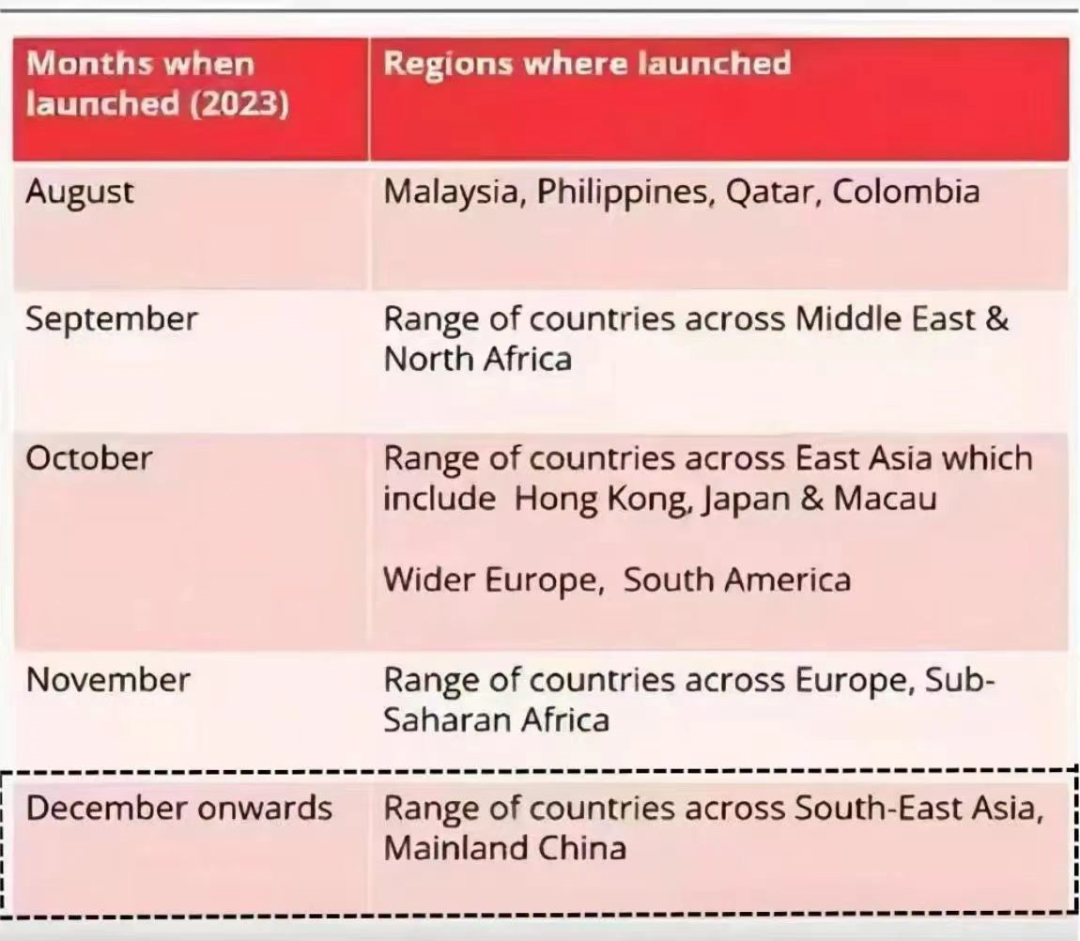 即將開放:馬來西亞、菲律賓、港澳、日本、歐洲地區(qū)、內地...