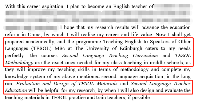 PS第一段用誠懇的語言描述了申請TESOL專業(yè)的興趣來源和職業(yè)理想,完美契合課程內容。