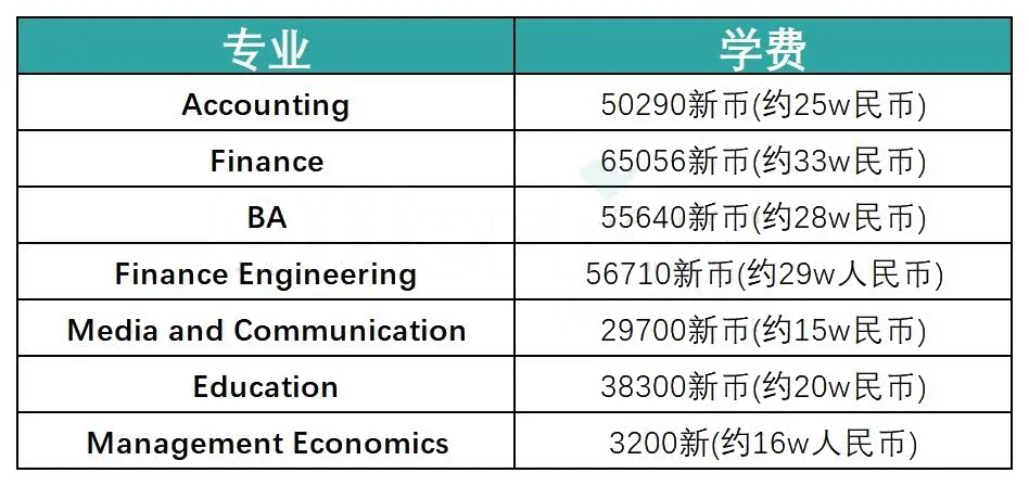 大部分學(xué)科在5-6萬新幣左右,約為25-30萬元人民幣(相對(duì)于香港的金融專業(yè)仍然較為適中)。