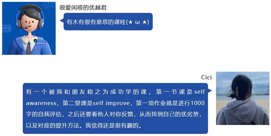 其實(shí)我也是個(gè)宅女,一個(gè)人處在陌生的社交環(huán)境也會(huì)很不舒服,但我會(huì)鼓起勇氣打開話題。小組討論的時(shí)候,我也會(huì)在leader和organizer這兩個(gè)角色之間橫跳——你也不知道這句話的語(yǔ)法對(duì)不對(duì)、發(fā)音好不好,但別糾結(jié)了,先張口去說(shuō),大膽講話。
