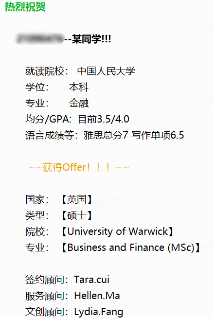 優(yōu)越留學(xué)有本科成功留學(xué)華威大學(xué)的案例,感興趣的可以點擊進行閱讀:考研二戰(zhàn)失利轉(zhuǎn)向英國留學(xué),一個月極限申請拿下華威商學(xué)院重磅offer!