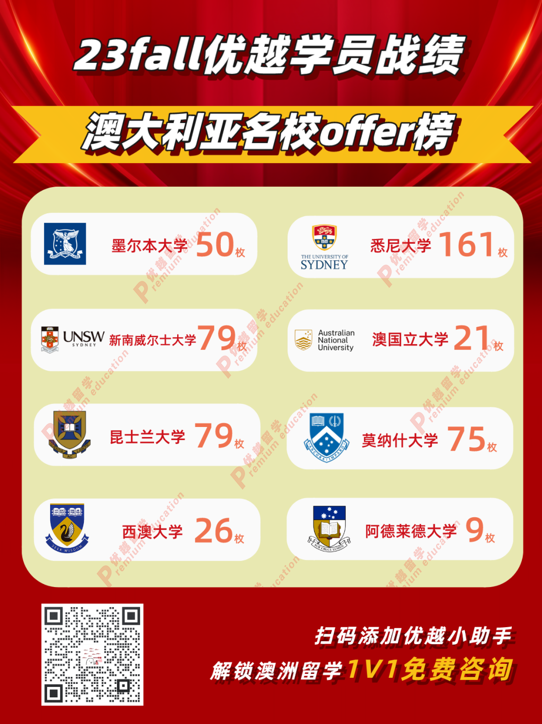 以上是【【澳洲八大?!拷庾x莫納什大學留學,中國留學生最向往的學校之一!】相關的全部內容,查看更多【莫納什大學留學】相關資訊可前往【優(yōu)越留學】首頁!詳細申請規(guī)劃及方案定制請預約優(yōu)越留學顧問為你一對一解答!