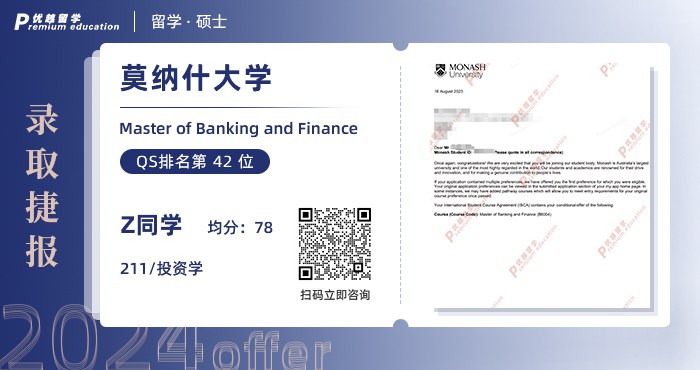 在優(yōu)越留學中介機構的協助下,這位學生成功地被莫納什大學的Master of Banking and Finance專業(yè)錄取,實現了G同學在金融領域的留學夢想。
