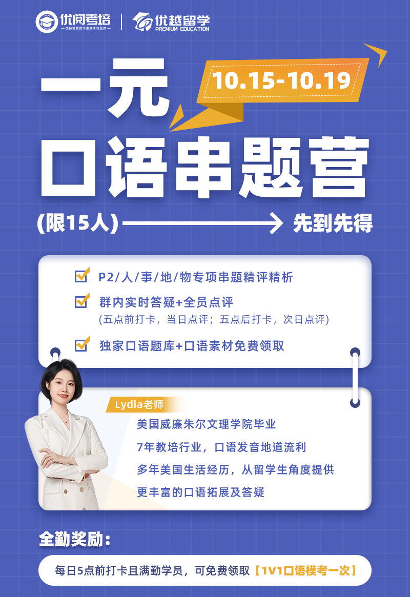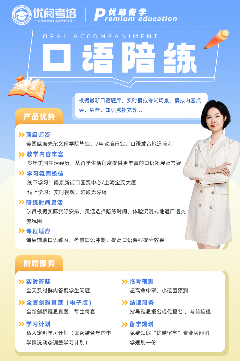 以上是【2023年備考資料100%白嫖,雙節(jié)期間課程神秘折扣送上!】相關的全部內容,查看更多【出國留學雅思】相關資訊可前往【優(yōu)越留學】首頁!詳細申請規(guī)劃及方案定制請預約優(yōu)越留學顧問為你一對一解答!