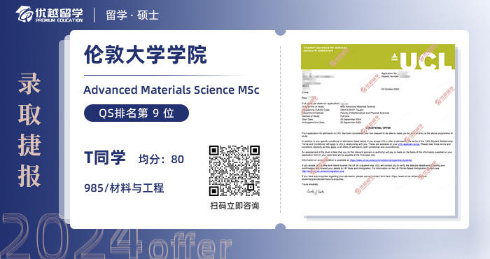T同學(xué)去年來(lái)優(yōu)越留學(xué)咨詢的時(shí)候已經(jīng)是6月底了,才開(kāi)始有留學(xué)的打算,而且雅思方面也是一張白紙,申請(qǐng)時(shí)間比較緊迫。作為一枚材料學(xué)專(zhuān)業(yè)學(xué)子,T同學(xué)想申請(qǐng)英國(guó)排名靠前的大學(xué),攻讀材料學(xué)專(zhuān)業(yè)碩士。然而GPA只有80分的他,在申請(qǐng)名校中缺乏核心競(jìng)爭(zhēng)力,只能放手一搏,最終搏到了世界排名第9的UCL。一起來(lái)看看T同學(xué)的出國(guó)留學(xué)碩士申請(qǐng)操作吧~