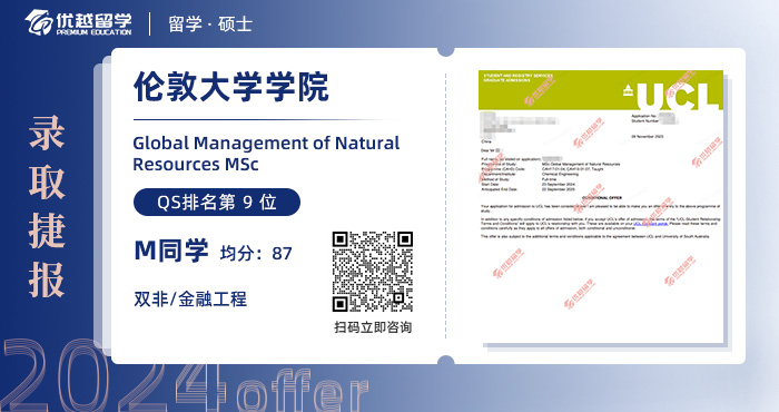 在英國研究生申請中,我們常常聽到這樣一句話:“本科背景定生死”,這確實是對當(dāng)前申請狀況的真實寫照。英國大學(xué)對中國學(xué)生設(shè)置了list門檻,本科背景成為了申請成功與否的關(guān)鍵因素之一?,F(xiàn)如今雙非申G5越來越稀有,今天優(yōu)越君就來分享一份新鮮出爐的24fall申請,成功斬獲了UCL錄取,堪稱同校同學(xué)的英國申請?zhí)旎ò濉?/p>