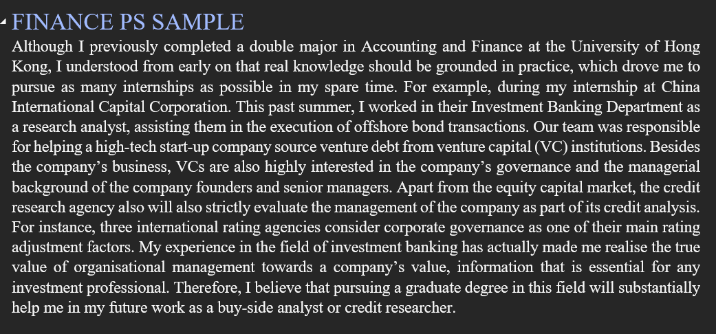 研究生及以上階段的PS注重反映申請者在自身領域的學術成就,專業(yè)技能和未來規(guī)劃;
