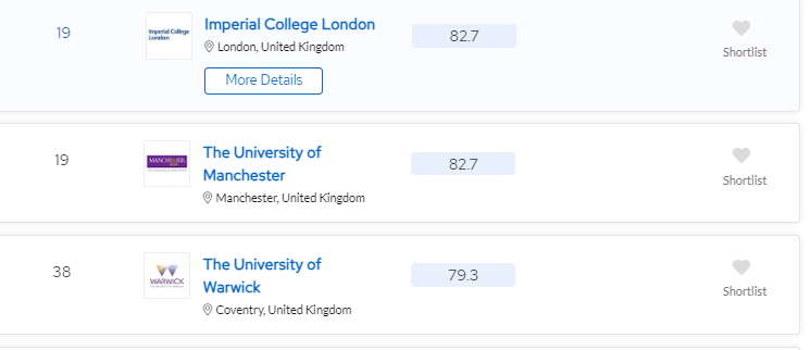 華威大學(xué)AF專業(yè)還在英國《衛(wèi)報》當(dāng)中位列全英第二。根據(jù)QS學(xué)科排名的評分劃分,華威和曼大的AF是和G5之一的帝國理工同屬一個梯隊的,其申請難度不可小覷。