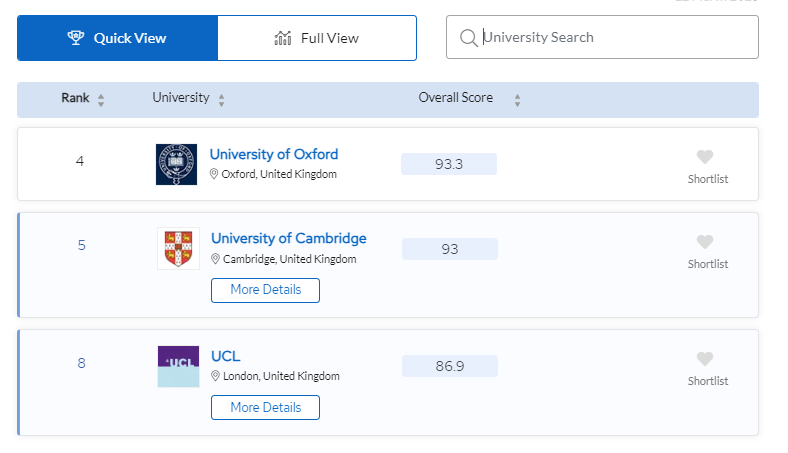 2023 QS學(xué)科排名中,生物醫(yī)學(xué)Biological Sciences專業(yè)位列全英Top 3的分別為牛津大學(xué)、劍橋大學(xué)以及UCL。