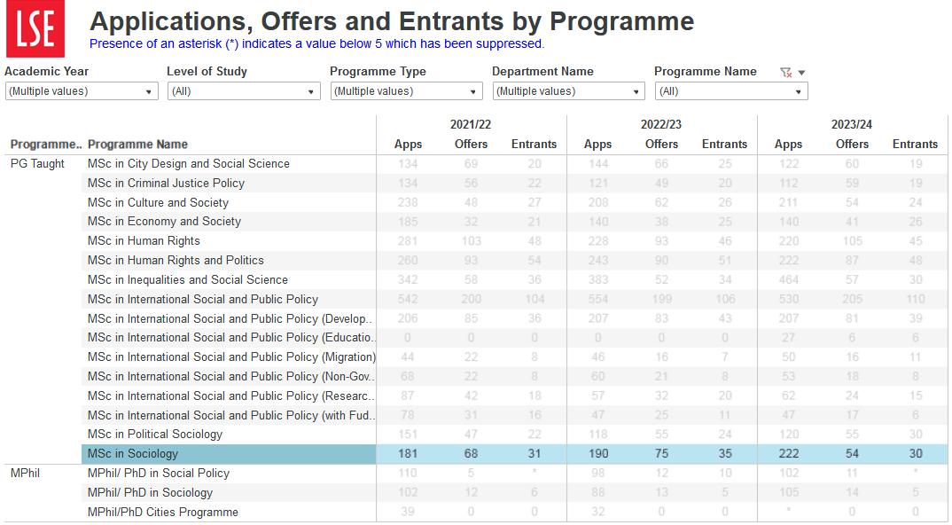 2、LSE社會(huì)學(xué)方向錄取數(shù)據(jù)