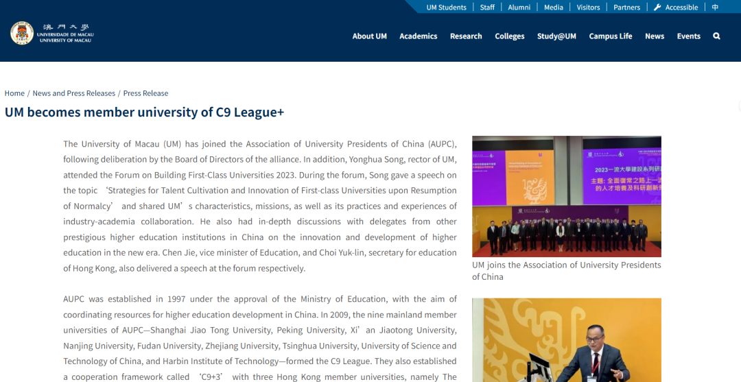 此次登上C9榜可從3個方面分析原因,首先是其院校資歷,作為中國澳門地區(qū)唯一一所具有現(xiàn)代化管理模式的國際化公立綜合性大學(xué),其前身為私立東亞大學(xué)。