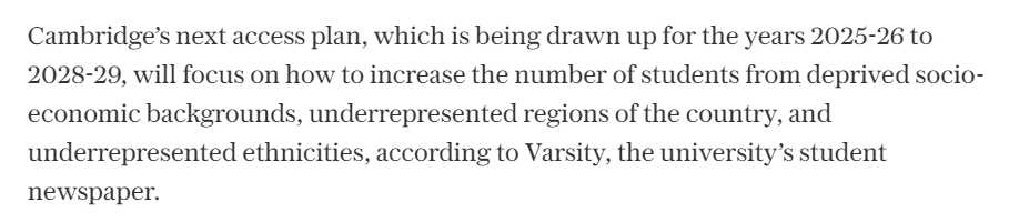 根據(jù)劍橋大學(xué)獨(dú)立報(bào)紙Varsity首發(fā)訊息,劍橋大學(xué)將取消公立學(xué)校的本科招生指標(biāo),并已經(jīng)著手制定2025-26學(xué)年至2028-29學(xué)年的入學(xué)計(jì)劃。