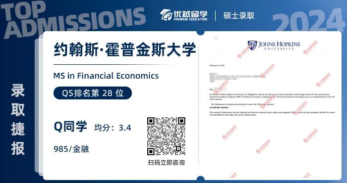 以上是【【美國top10】籌謀一年,金融學(xué)姐強(qiáng)勢拿下約翰斯·霍普金斯大學(xué)! 】相關(guān)的全部內(nèi)容,查看更多【名校案例】相關(guān)資訊可前往【優(yōu)越留學(xué)】首頁!詳細(xì)申請規(guī)劃及方案定制請預(yù)約優(yōu)越留學(xué)顧問為你一對一解答!