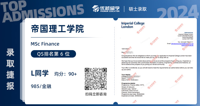 以上是【本期案例分享:【英國(guó)G5】金融學(xué)子申研“天花板”,帝國(guó)理工商學(xué)院拿下!】相關(guān)的全部?jī)?nèi)容,查看更多【名校案例】相關(guān)資訊可前往【優(yōu)越留學(xué)】首頁(yè)!詳細(xì)申請(qǐng)規(guī)劃及方案定制請(qǐng)預(yù)約優(yōu)越留學(xué)顧問(wèn)為你一對(duì)一解答!