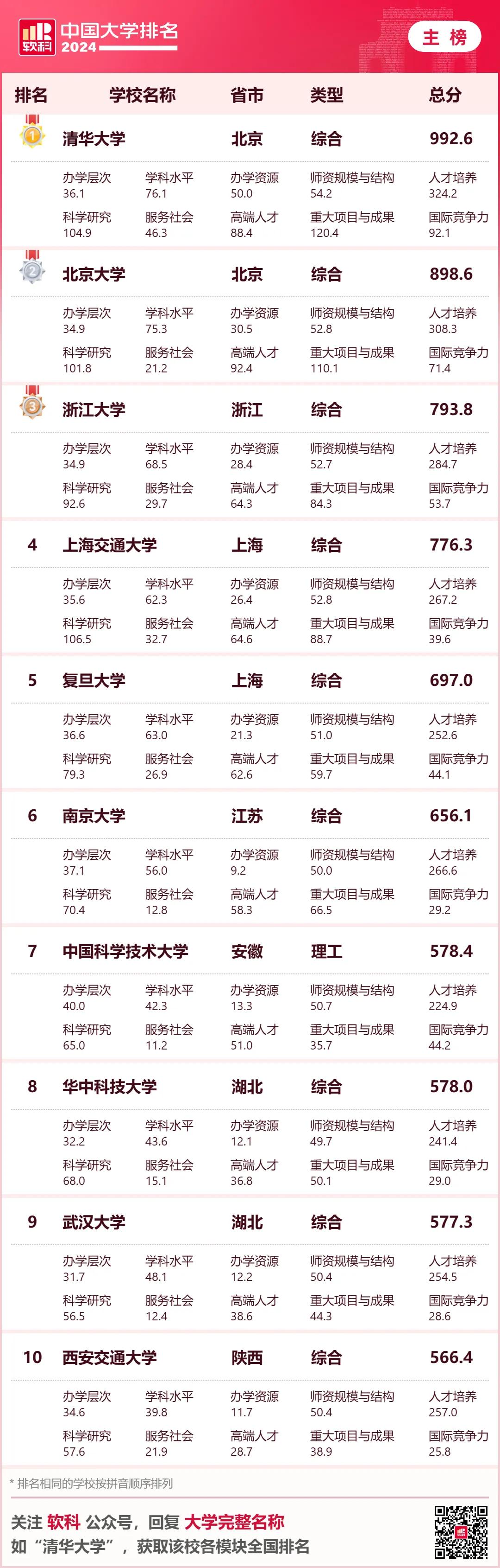 北京時(shí)間4月18日,高等教育專業(yè)評(píng)價(jià)機(jī)構(gòu)軟科正式發(fā)布了「2024軟科中國大學(xué)排名」。