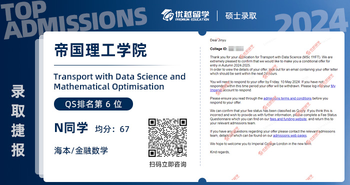 以上是【本期案例分享:【G5名?!亢1揪?7學姐,拿下帝國理工學院DS碩士offer!】相關(guān)的全部內(nèi)容,查看更多【名校案例】相關(guān)資訊可前往【優(yōu)越留學】首頁!詳細申請規(guī)劃及方案定制請預(yù)約優(yōu)越留學顧問為你一對一解答!